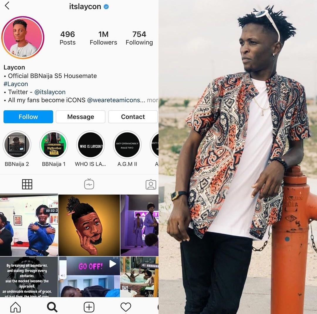 Big Brother Naija Lockdown housemate, Laycon has hit a record of one Million followers on photo-sharing app, Instagram.