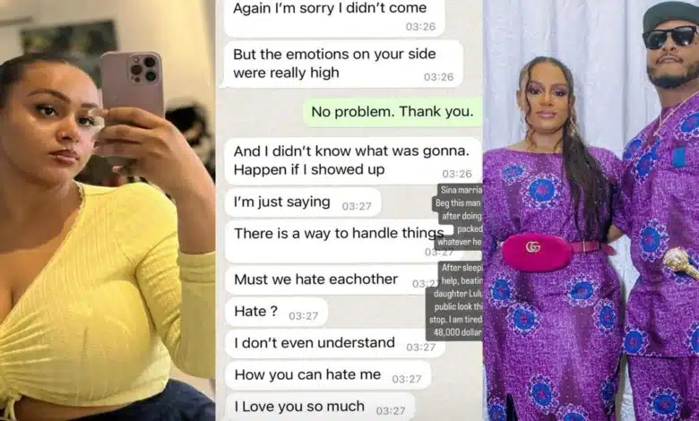 Frau Korth Adeleke, the estranged wife of Sina Rambo makes more revelations on her marriage with the singer as she shares chat of him begging for her return.