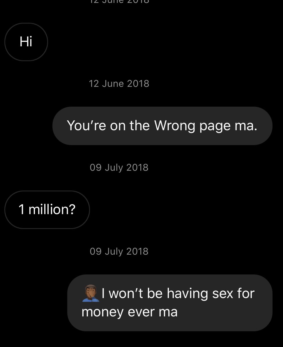 The reality, however, ushered out the lady by saying she was in the wrong inbox. She persisted and made the offer enticing by offering the sum of N1M.