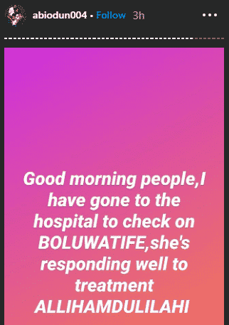 This morning, Abiodun gave an update. She said Boluwatife is responding to treatment.