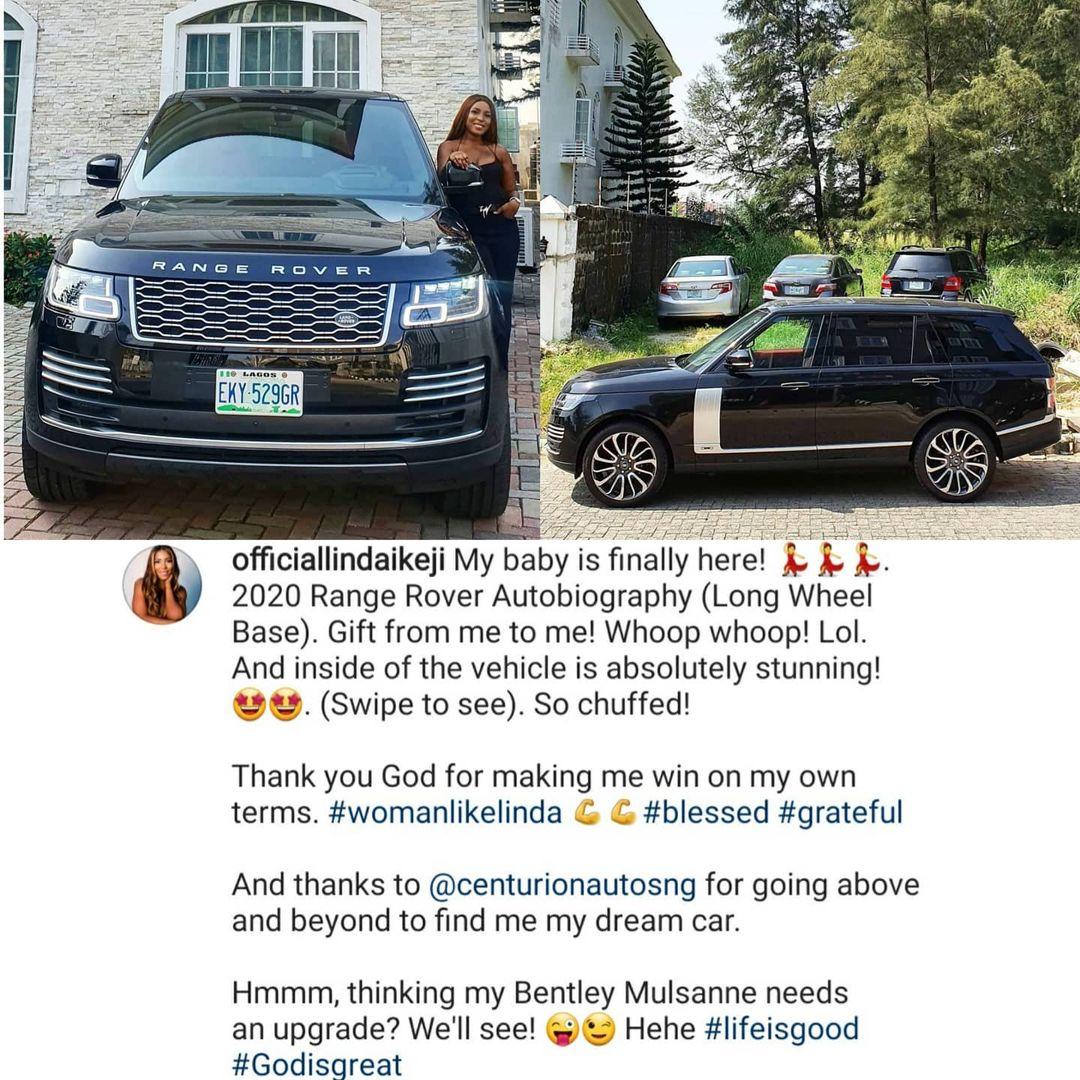 Popular Nigerian blogger, Linda Ikeji has taken delivery of her 2020 Range Rover Autobiography, months after she showed off 85 pairs of shoes and 50 bags.