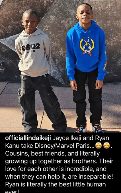 “Jayce Ikeji and Ryan Kanu take Disney/Marvel Paris. Cousins, best friends, and literally growing up together as brothers. Their love for each other is incredible, and when they can help it, are inseparable! Ryan is literally the best little human ever! They’ve been on a few vacations together in the past, but this is the first one they will remember as they are nearly 6 and 7 now,” she wrote.