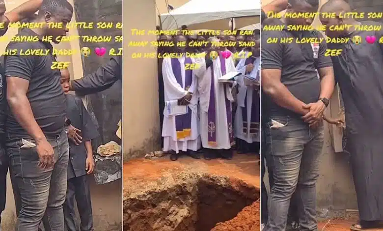 Little boy flees, refuses to throw sand into late father’s grave during burial