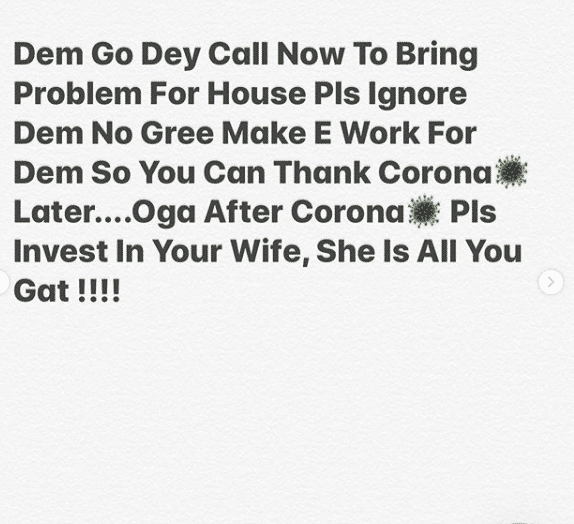 According to Cubana Chief Priest, some side chicks are worried that their men won’t return to them after the Coronavirus pandemic because some smart wives must have used the opportunity to work on their husbands.