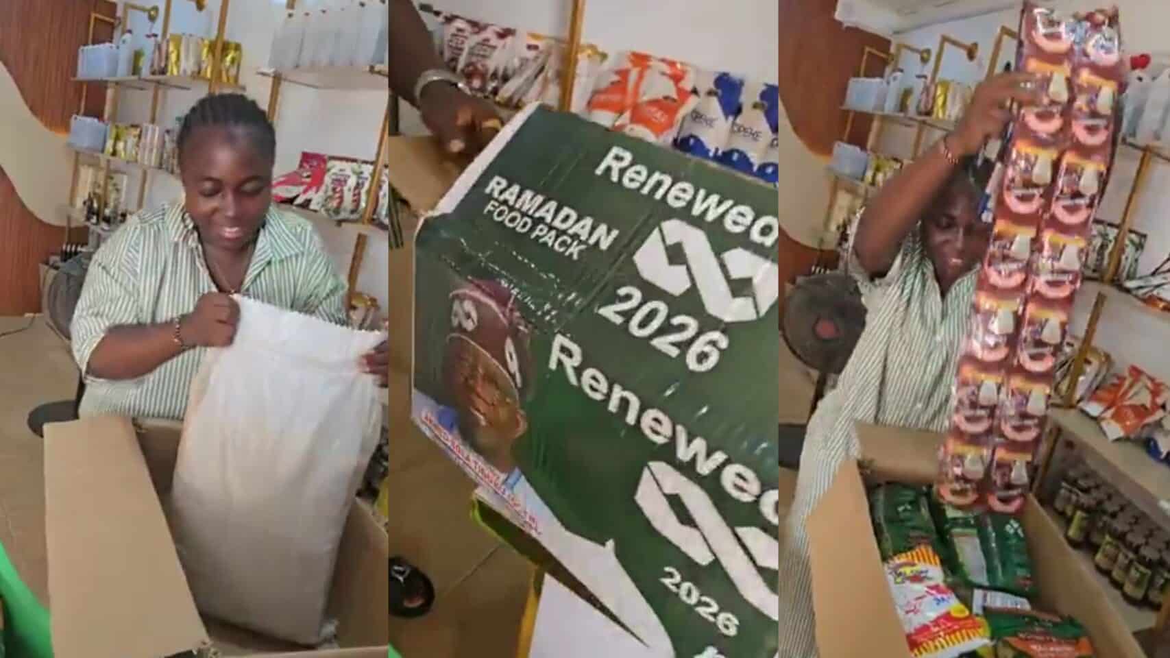 A woman has stirred widespread debate on social media after sharing a video of a Ramadan food package she said was received from President Bola Tinubu.