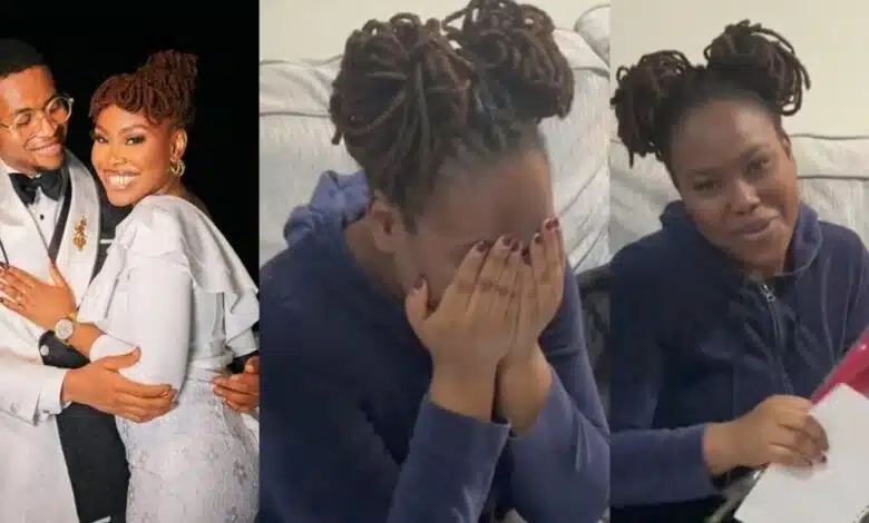 On the X platform, the media personality asked his wife to close her eyes with her hand stretched while he unveils what he got her for Valentine.