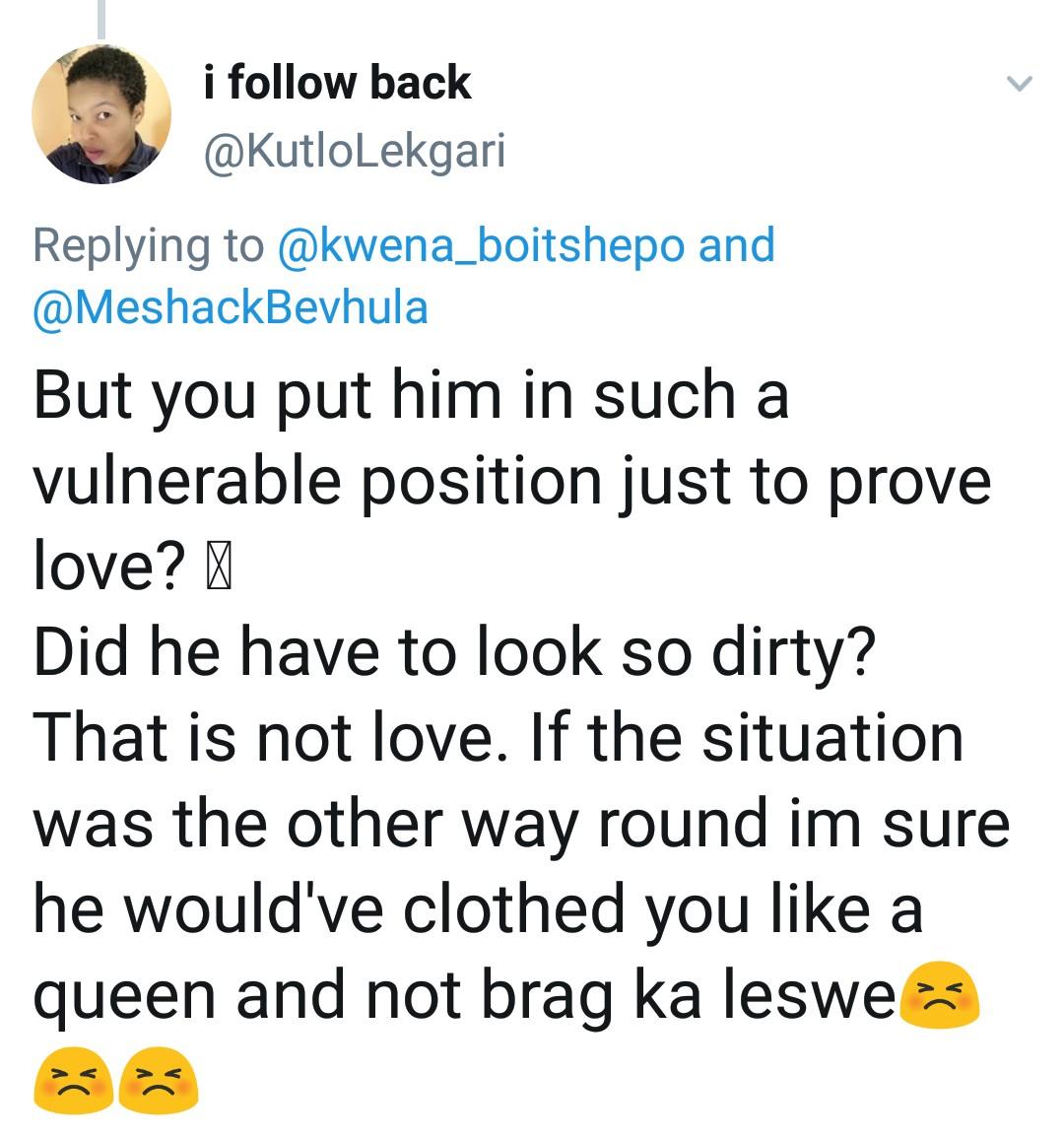 Replying a lady who asked her why she allowed him look dirty in the viral photo, she said;