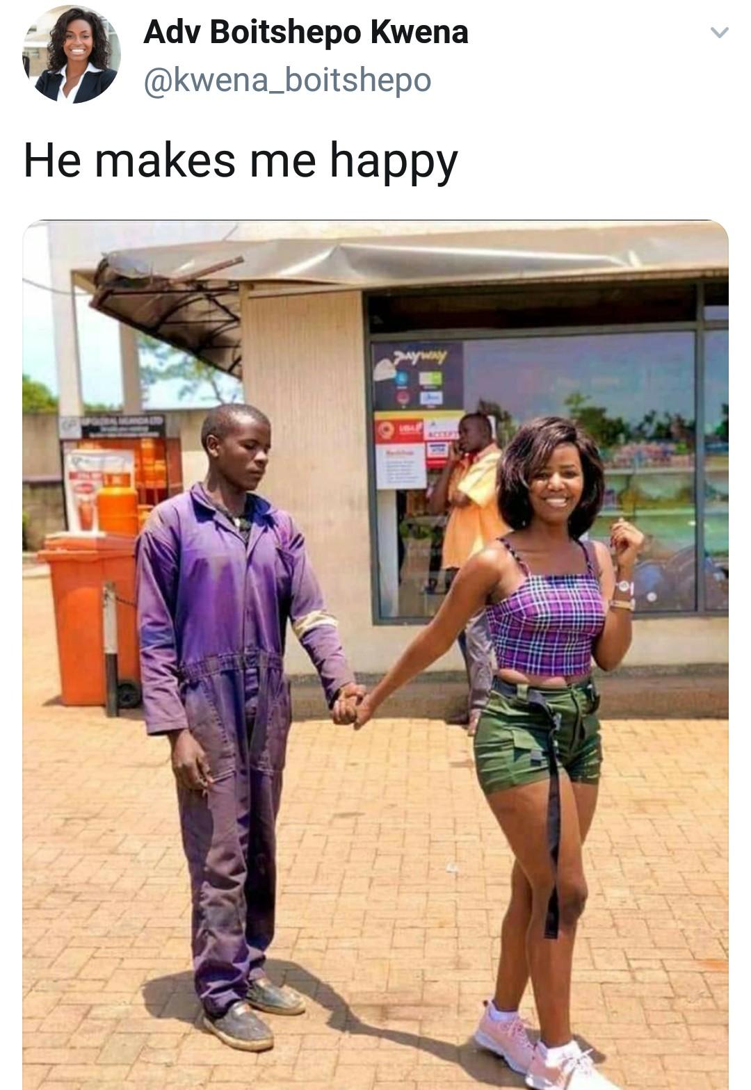 Speaking via her recent tweet, she said he makes him happy, and she’s glad to be in a relationship with him because love is not about material things.