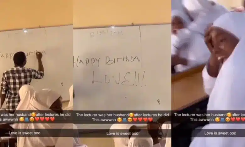“Love is sweet ooo” – Classmates grin with envy as lecturer celebrate student-wife’s birthday with handwritten note (Video)
