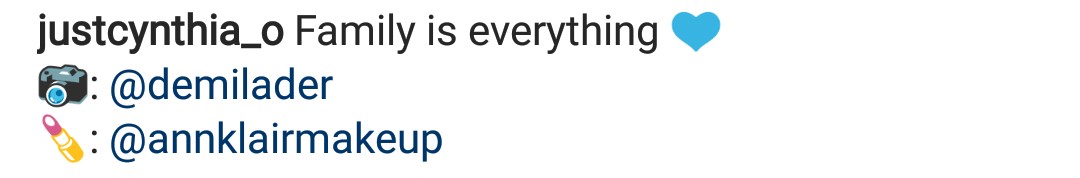 His wife Cynthia shared another photo which she captioned; “Family is everything”.