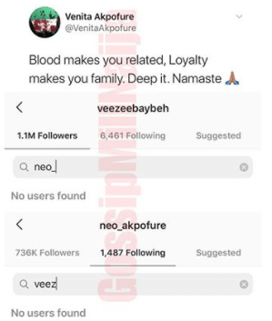 “Loyalty makes you family” – Says Venita as she unfollows Neo on Instagram