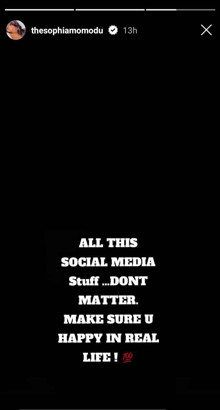 Davido’s baby mama, Sophia Momodu pens a cryptic message as she urged people to ensure that they’re not only happy on social media but in real life.