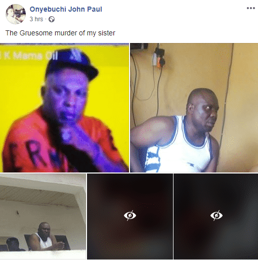 on Thursday 26/3/2020 I decided to stop at their house before going to work.Reaching the compound i saw police men in the compound and crowds gathered. When the special crime unit of the police arrived i was taken to the room to find the dead body of my sister MRS RITA ONYEBUCHI laying in pool of blood . And the body has started to decompose. The whole place was smelling and blood all over the bedroom.