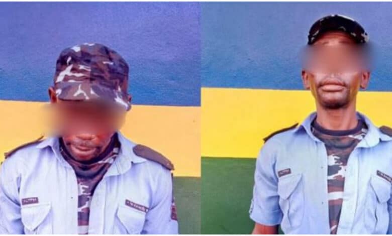 In the photo circulated online, the young man who was paraded at the police station was seen wearing a police shirt, camouflage T-shirt, and a police cap.