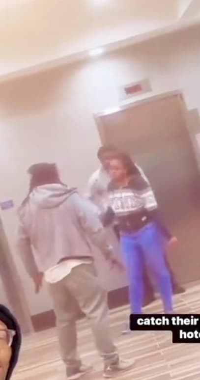 In the video making the rounds online, the man had caught them when they were about to take the elevator to their room.