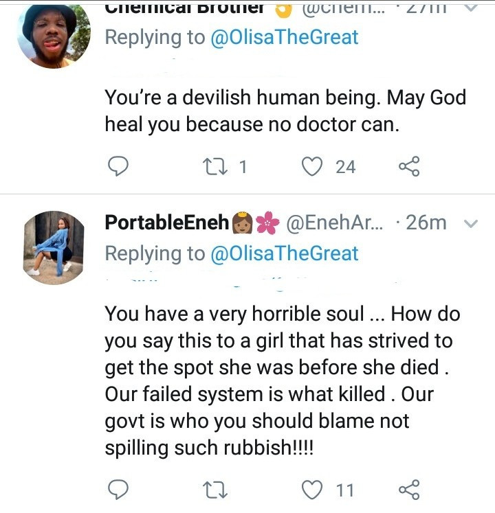 A Nigerian man has sparked outrage on social media after he blamed the death of Tolulope Arotile on gender equality.