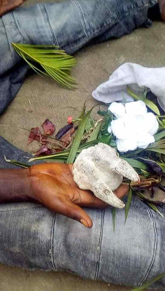 According to images shared by a Facebook user, Adolf Ramsom Pepple, the suspected is arrested with fetish items in the Bonny Local Government Area of the State.