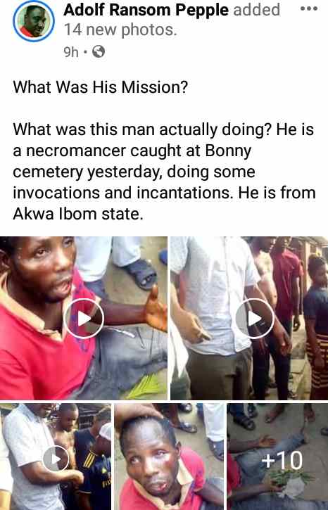 A man suspected of practicing black magic in invoking spirits has been caught around a cemetery in the Bonny area of Rivers state on Tuesday, November 10.