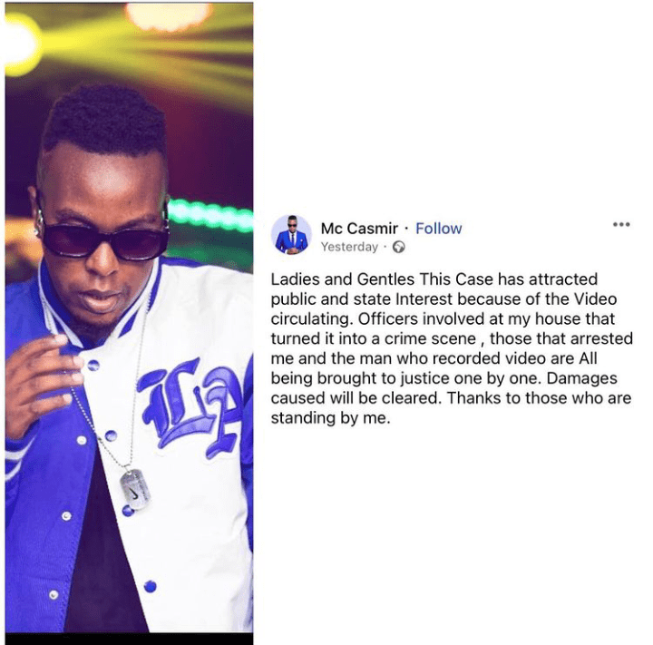 Speaking after the video went viral, MC Casmir took to social media to state that his house was turned into a crime scene. He also promised to get justice against those who recorded him.