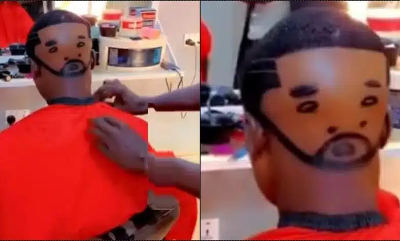 The barber in question took his time to deliver an intricate design of a second face at the back of his client’s head.