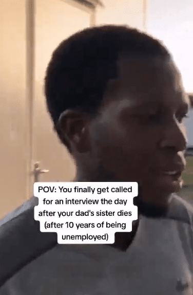 “POV: You finally get called for an interview the day after your dad’s sister dies (after 10 years of being unemployed),” the video caption read.