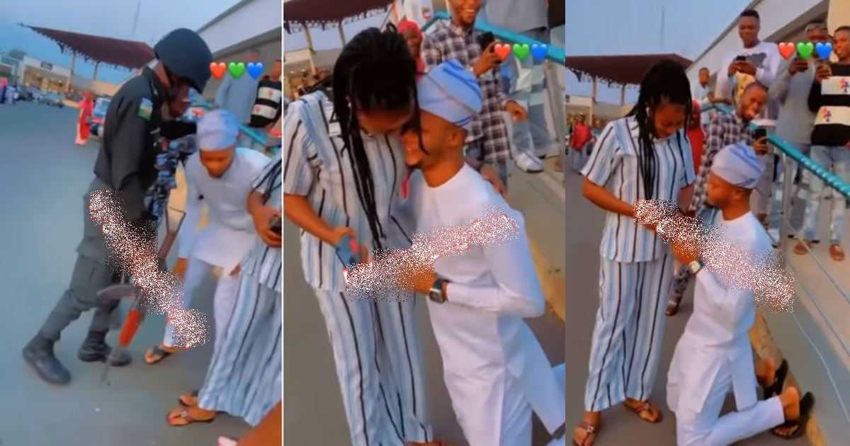 Man collaborates with armed policemen to give girlfriend a shocking marriage proposal in Kwara (Video)