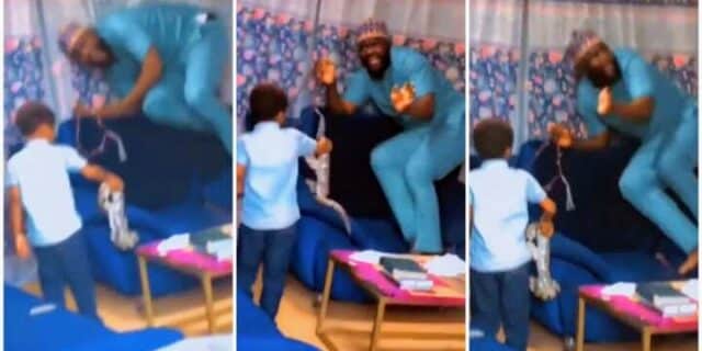 A Nigerian man found himself in a frightening situation when his little son approached him with a snake.