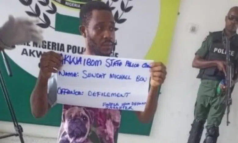 One Sunday Michael Ben has been arrested by Akwa Ibom State police command for allegedly defiling his six-year-old daughter.