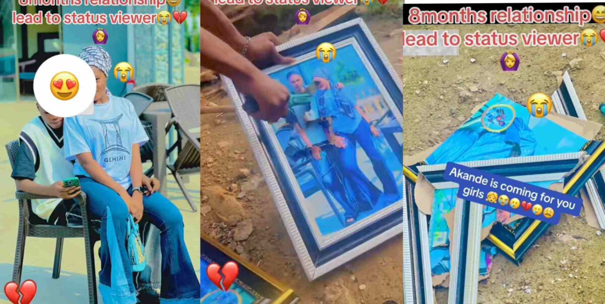 A video he shared online shows him destroying the framed photo with a hammer; he added that he and the lady are now status viewers on each others WhatsApp account.