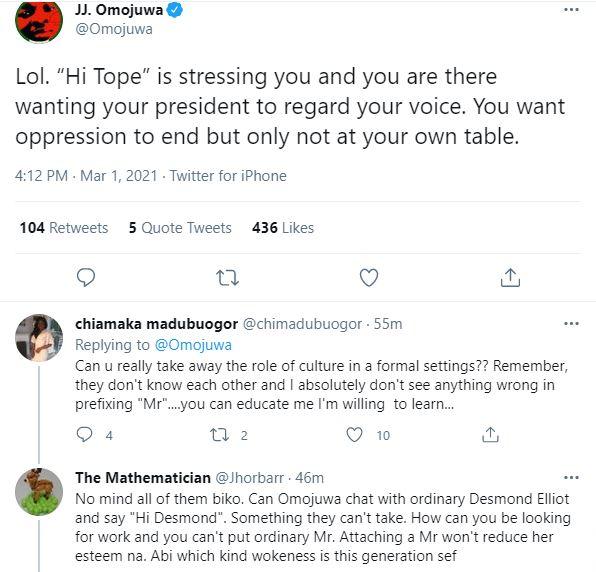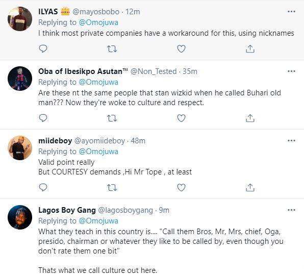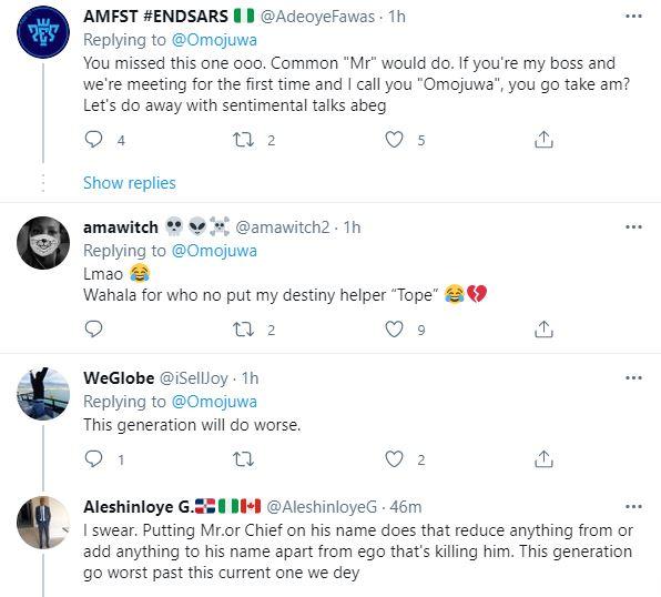 This tweet was however triggered by mixed reactions as most users consider the fellow unprofessional by requesting for respect on his boss’s name.
