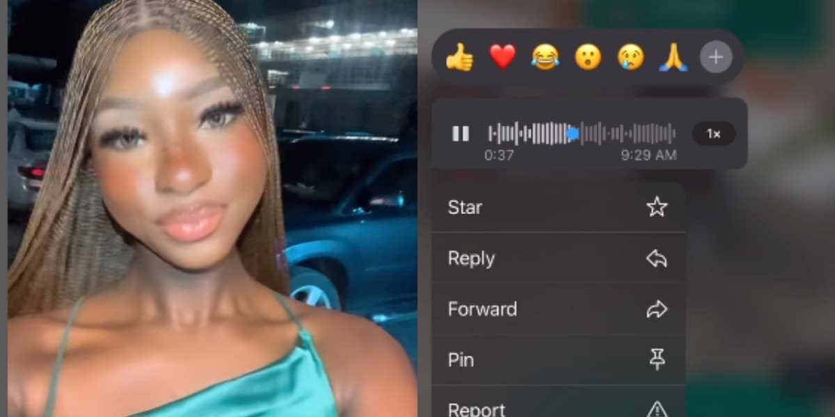 The lady took to social media to share the WhatsApp voice note she received from the man.