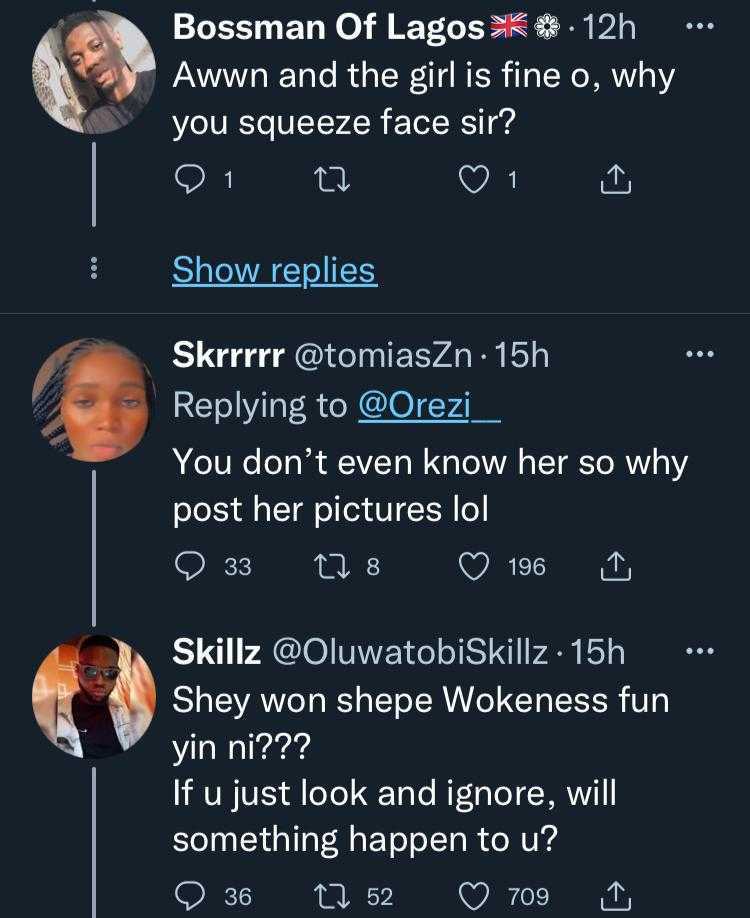 The users intentions were, however, questioned by other users of the platform who had a thing or the other to say about the photos revealing the face of the young lady.