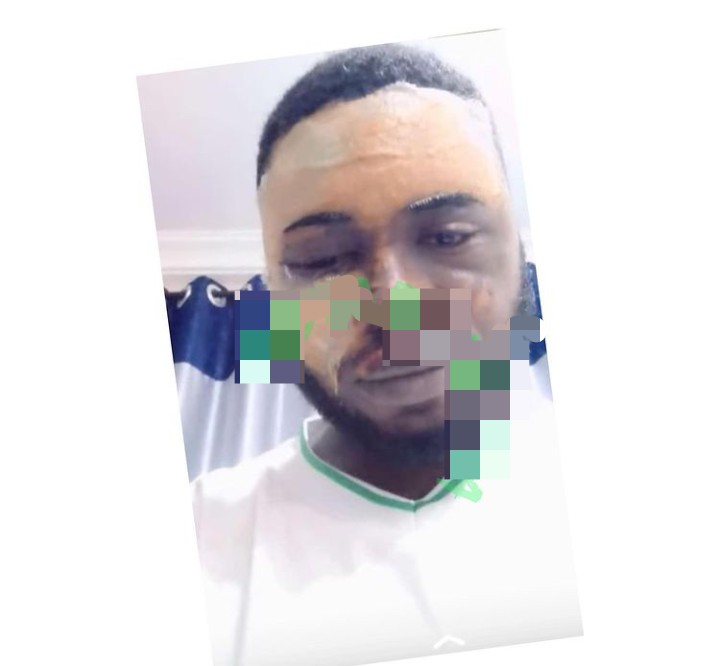 A Nigerian man identifed as Obinna has been hospitalized after his girlfriend, Nancy, poured hot water on him during an altercation.