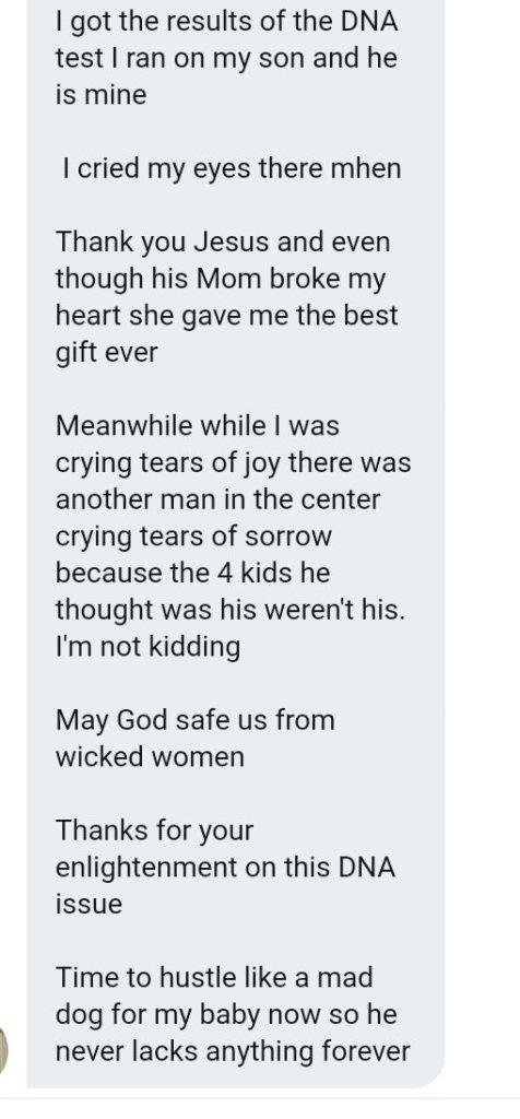 The man has written to a Twitter influencer, Moris Monye to narrate how he is filled with so much joy after he ran a DNA test on his son and he discovered that he was the biological father.