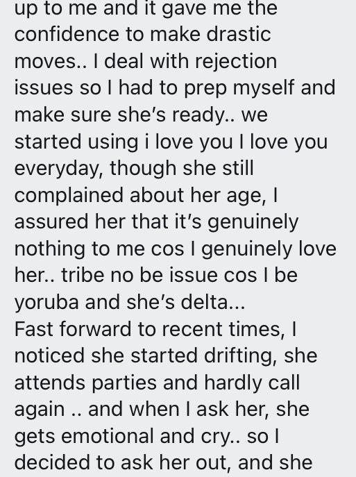 “I feel I’ve completely lost my mind. This girl and I started out as complete friends… we were both in toxic relationships so we advised ourselves.. I couldn’t stand mine so I called it quit, while she did the same few weeks after. Prior to this, we talk every single time even when I’m in meetings, we do almost everything together on videocall and she started opening up about her feelings…”