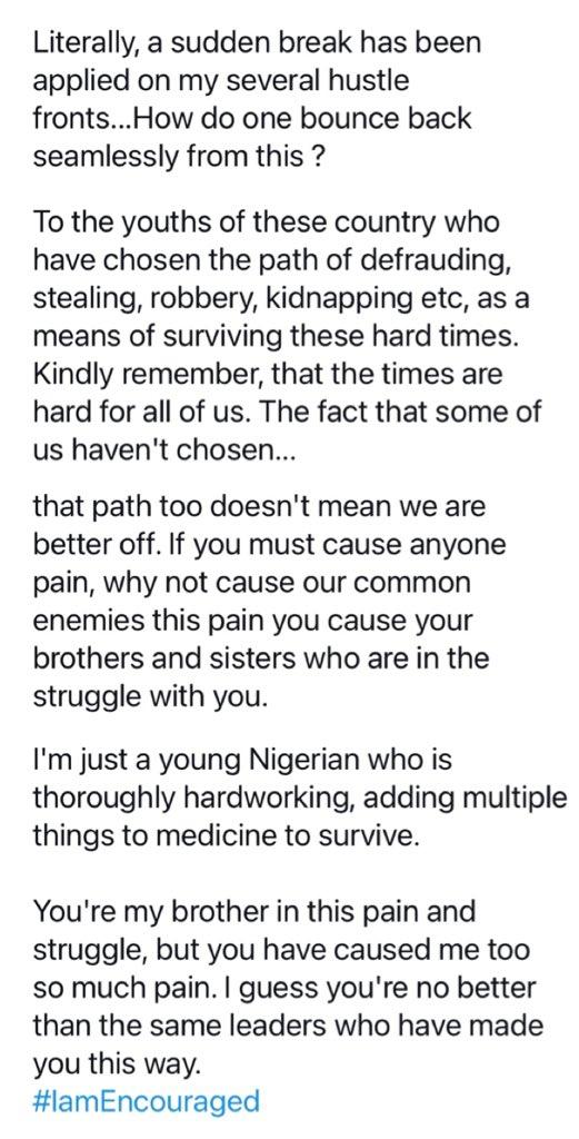 I’m a young Nigerian Hustler, my friends will testify to this. I wasn’t born into wealth, I’m working tooth and nail, knowing that the hope of my family lies on my shoulders. I’m a young Medical Doctor turn Graphic Designer and an IELTS Tutor who is currently coding his night”