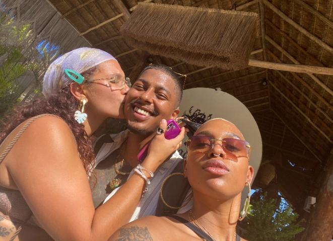 The twitter user, identified as Raimage shared photos of himself and the ladies loving up at the beach side.