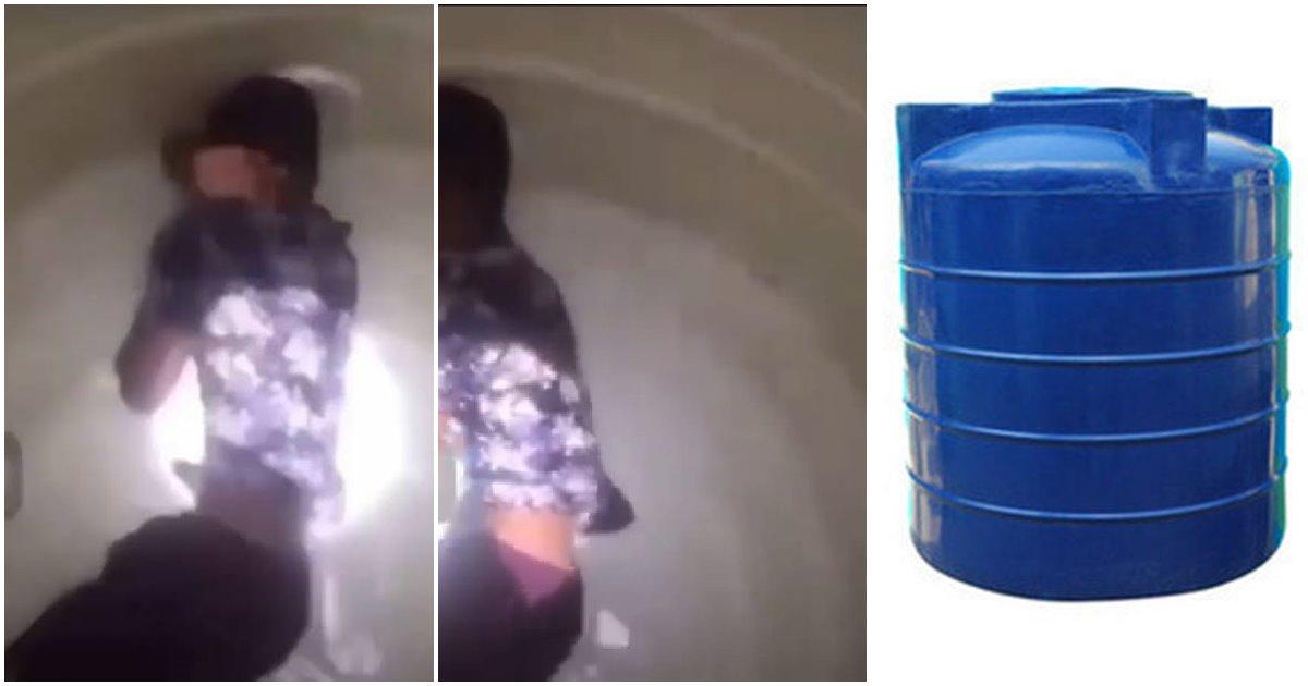 A Ghanaian man has been spotted in a water tank crying to mend his broken heart after his girlfriend dumped him for someone else.