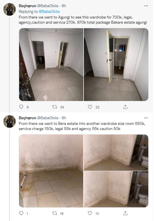 In subsequent tweets, he shared photos of other houses he went to inspect of which none of them to him were actually worth the demanding price.