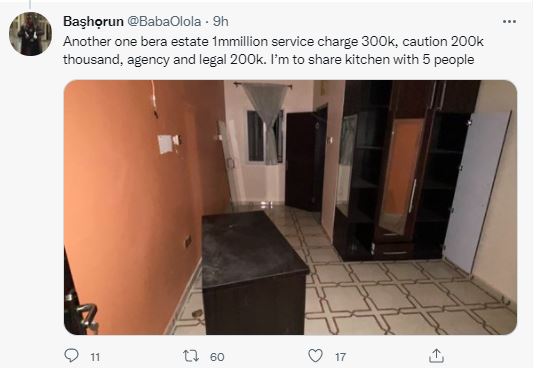 According to him, the 600k is basically the actual rent as he’s also expected to pay an additional sum of 120k for agency and legal fees, amounting to a total of 720k for a house he feels doesn’t worth the money.