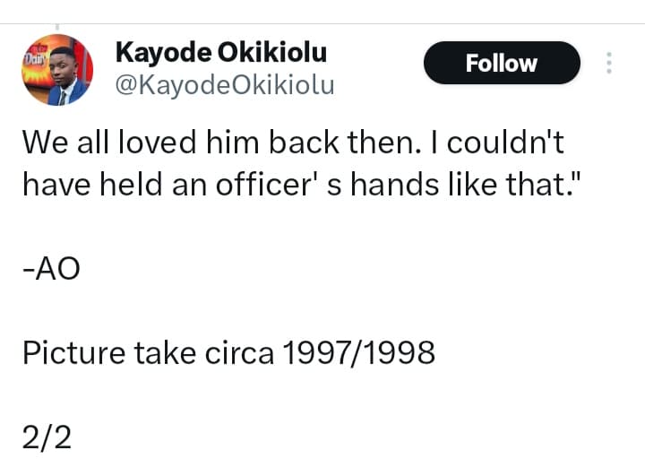 The man identified as Kayode Okikiolu took to X to share this following the recent announcement of the passing of the gentleman soldier.