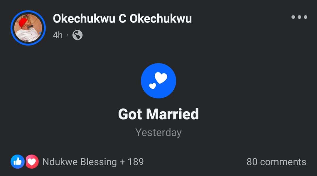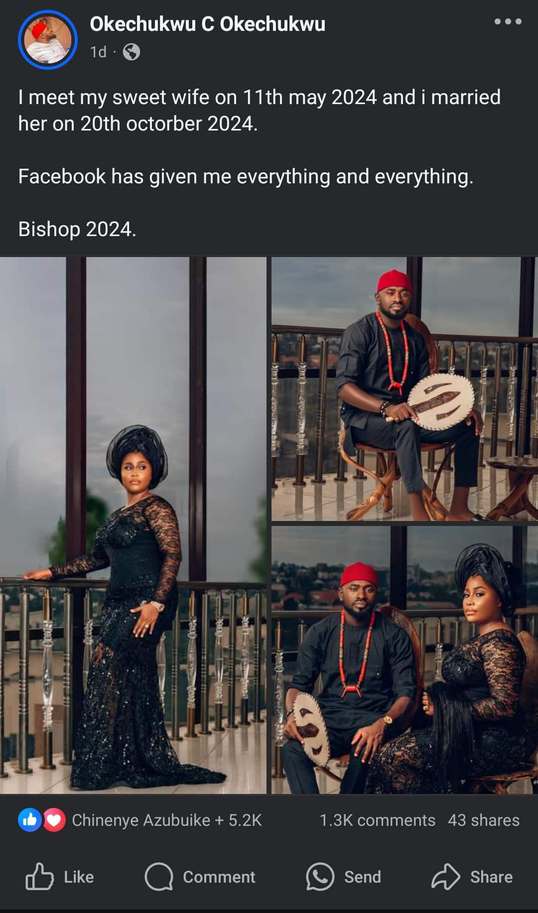 A Nigerian man has announced his marriage to a woman he met on Facebook just 5 months ago, sharing traditional wedding photos on his media page.
