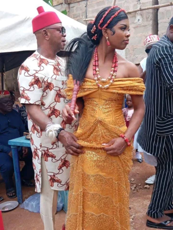 Photos reportedly from a recent wedding in Anambra State have gone viral online, sparking wave of discussion online due to the noticeable age gap between the bride and groom.