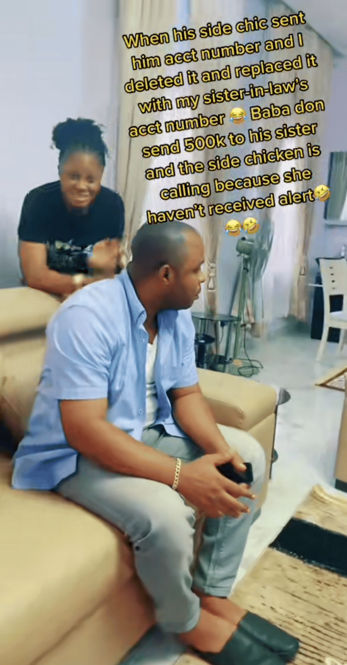 A Nigerian man unknowingly transferred money to his sister-in-law after his wife intentionally replaced his side chick‘s account number on his phone.