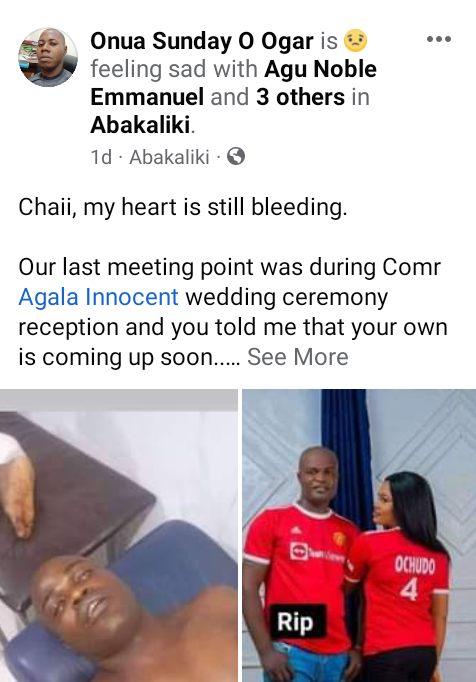 “You were an easy going person and jovial, even in our primary and secondary school days, I had never seen you quarrel with anybody. Chai! Your death hurt me to the marrow. God knows the best. Adieu Isaac. Adieu Ochudo. Rest in peace my classmate.”