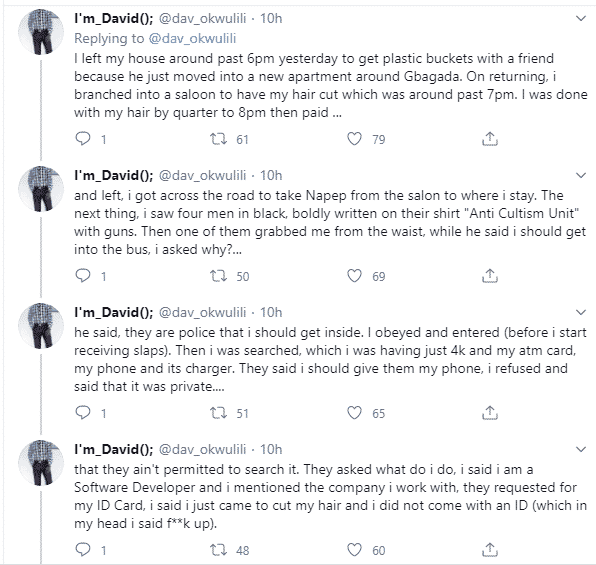 A Nigerian man has narrated how he was allegedly arrested and extorted by SARS officers after getting a haircut.