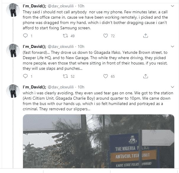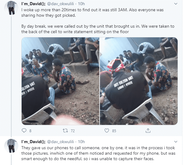 The young man said he was picked up by the SARS operatives before 8:00 pm on Wednesday, June 3. He also said that the officers arrested more people and assaulted those who resisted.