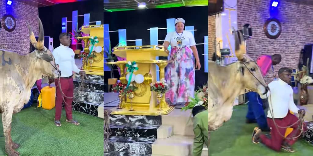 A Nigerian man is trending online after he took a large cow into a church as an offering to appreciate God for His wonders over his family.