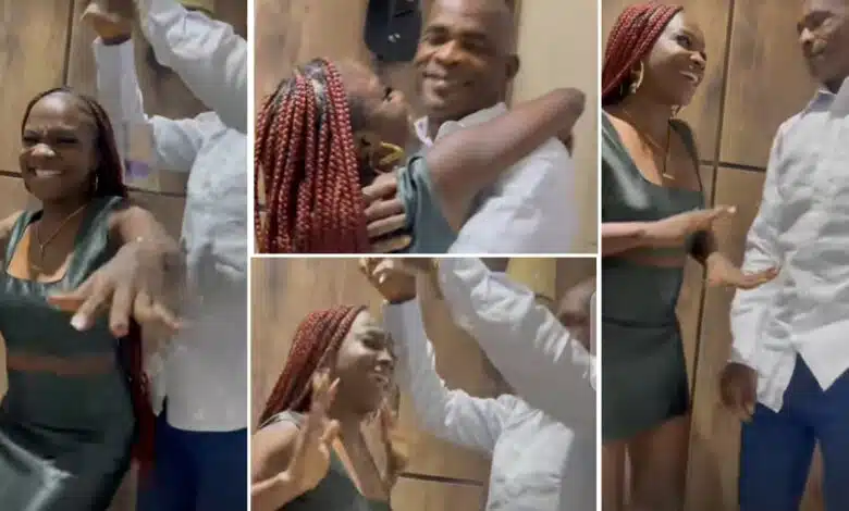 “Man on fire” – Ugoccie hypes her dad as he showers wads of cash on her (Video)