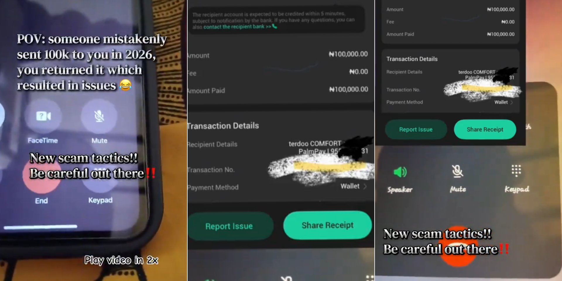 A man recently shared an encounter with a scammer on a phone call. According to him, a stranger sent ₦100,000 to his OPay account and immediately called, instructing him to return the money, but to a different account.
